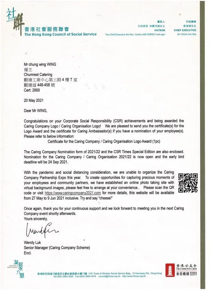 同時榮獲HKCSS社聯頒發商界展關懷10+標誌!